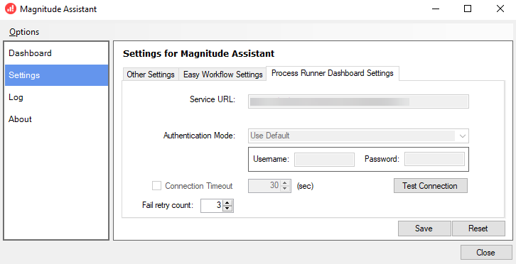 - In Fail retry count box, select the number of attempts that Magnitude Assistant must try to connect to the Dashboard database.