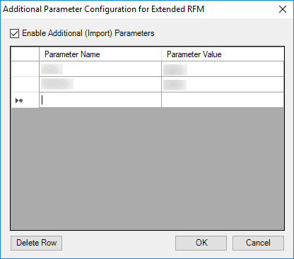 - Select the Tools icon. The Additional Parameter Configuration for Extended RFM dialog box is displayed.