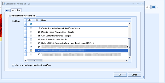 - Select Allow user to change this default workflow. The user can change the workflow assigned to the template file when starting a workflow.