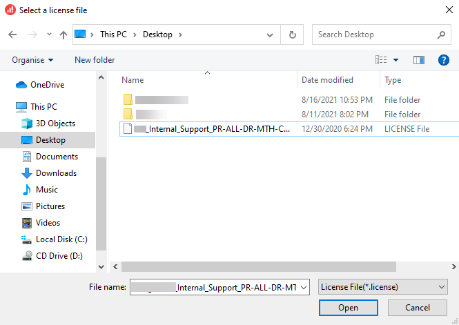 - In the file explorer window, select the license file (