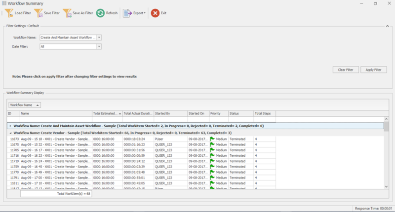 - To filter the records in Workflow Summary Display section, perform one of the following steps: