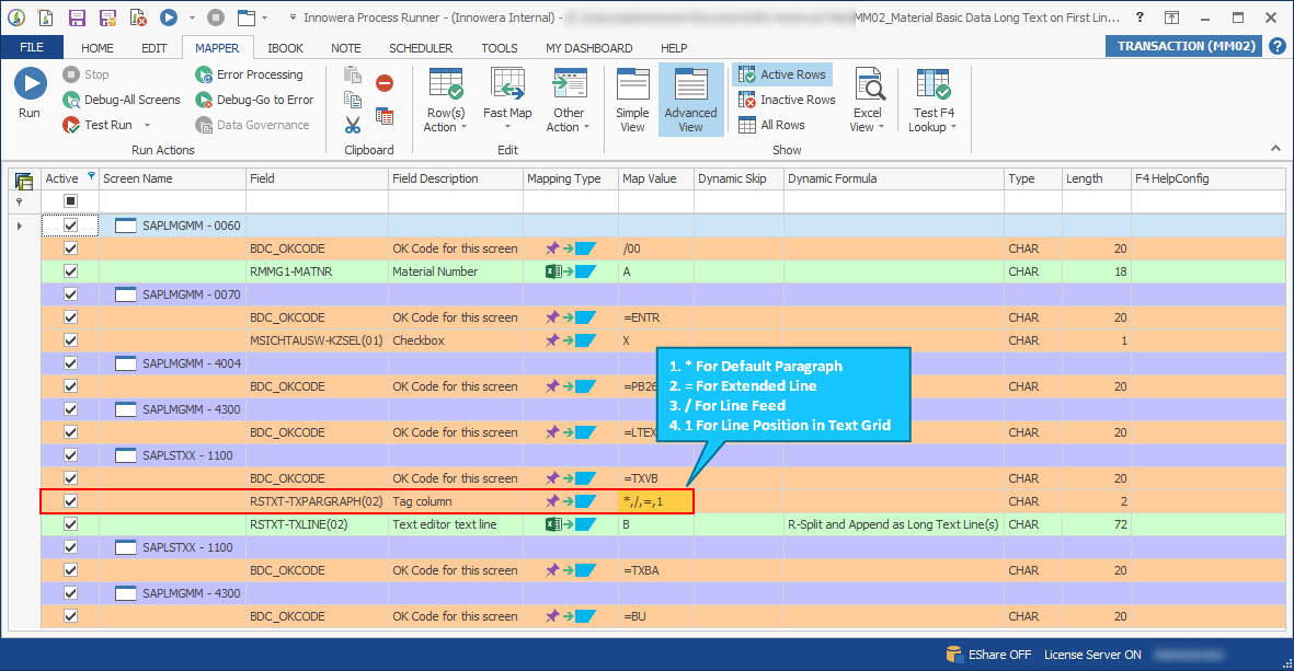 - Go to the Mapper tab and select R-Split and Append as Long Text Lines(s) dynamic formula in the Dynamic Formula column.