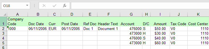 For example, when you run the FB-50 Transaction Process file and select the S-Remove Spaces / Accounting Formats for the Amount in document currency column that contains the currency symbol, Process Runner removes the currency symbol and posts the data to SAP.