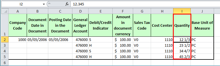 For example, when you run the FB-50 Transaction Process file and select the T-Get Internal Value for the Quantity column that contains fraction values, Process Runner obtains the internal value and posts the data to SAP.