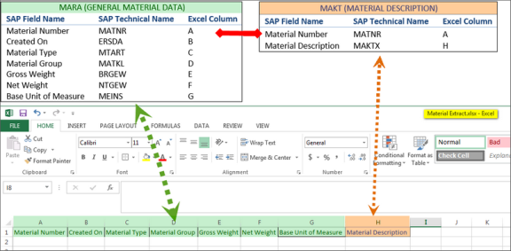 Column H contains data from MAKT (Material Description) table. But, we extract data only related to MARA and a pseudo join is created between MARA and MAKT.