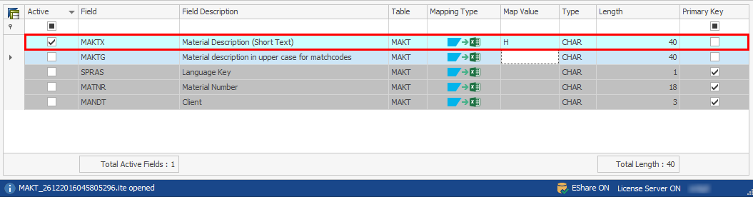 MATKtable, repeat the steps 2-6. - On the Mapper tab, select the required fields from this table and map those fields to the Excel columns.