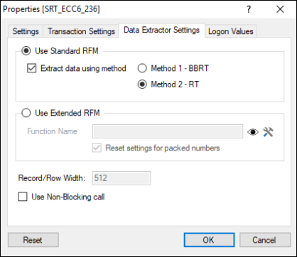 custom module name in the Function Name box. For more information, see Configure Extended RFM for Data Extractor .- Reset settings for packed numbers: If you are using the custom function module that is provided by SAP, you might face the decimal separator issue. To resolve this issue, select this option.