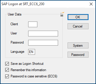This topic describes how to sign in to any SAP system without creating a logon shortcut. In such a scenario, Process Runner asks for the logon credentials to run any Process file. You can also configure the system properties for an SAP system from the Magnitude Connector for SAP window.