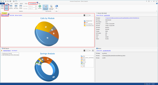 - In the Report section, select the Calls by Module link. The graphical reports of calls made to SAP are displayed in both two-dimensional and three-dimensional views.