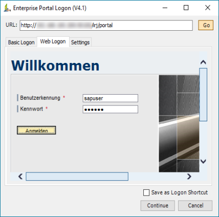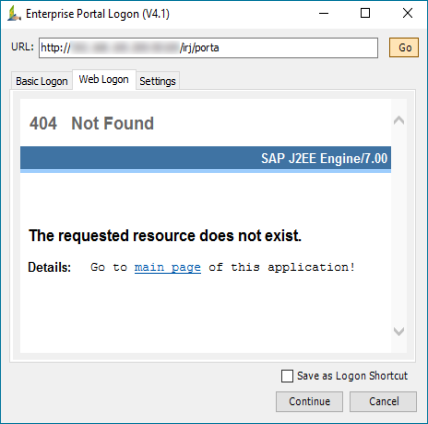 Note that the web logon is not successful if the URL is invalid or the settings are invalid.