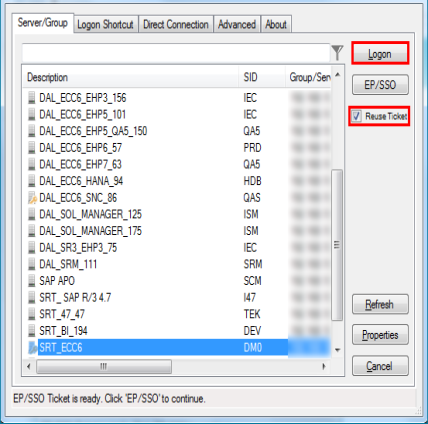- Optionally, reuse the ticket for the target server and select Logon instead of repeating the procedure every time.