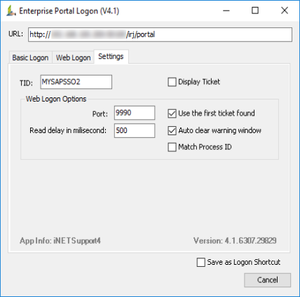 - On the Basic Logon tab, enter your authentication details. The portal page might require the authentication details before it gets loaded and provides a ticket.