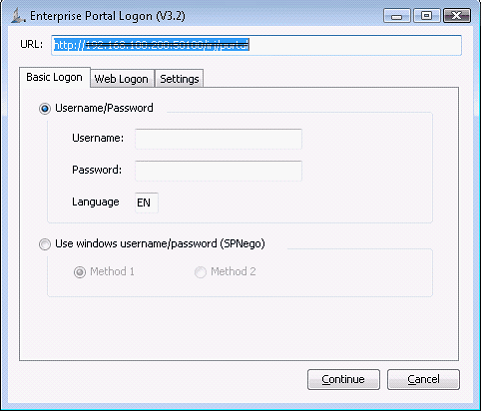 Following are the settings you need to make ensure if you encounter any problem in connecting through Enterprise Portal Logon of Process Runner. ** Make sure you have version V3.2 of Enterprise Portal Logon installed. 1.First check whether your URL is working or not. It might not work sometimes due to network/connectivity issues.