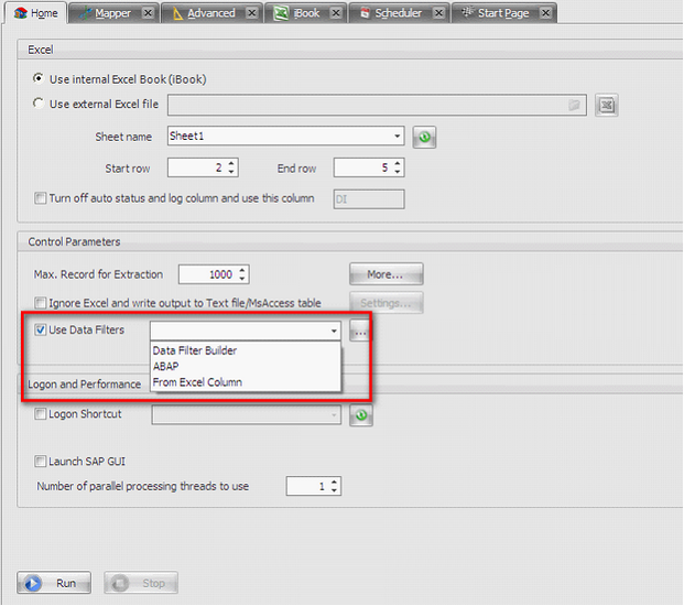 In Home tab, enable ‘Use Data Filters’ option and select ‘Data Filter Builder’ option in the drop-down menu.