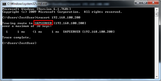 3.Open the command prompt and type tracert and “SAP Server IP address”.