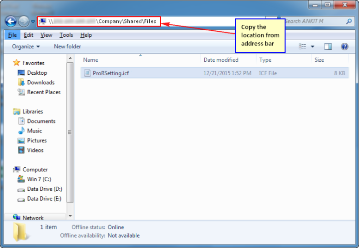 This method is used to share the configuration file through network drive. Follow these steps to share the ProRSetting.icf file