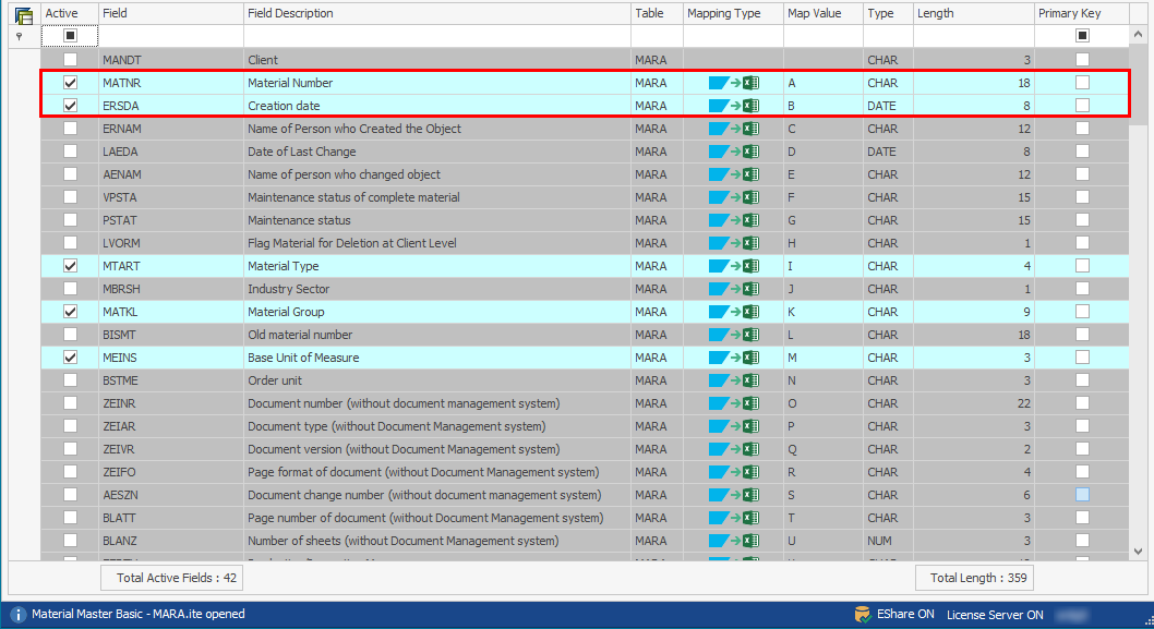 MATKtable, repeat the steps 2-6. - On the Mapper tab, select the required fields from this table and map those fields to the Excel columns.