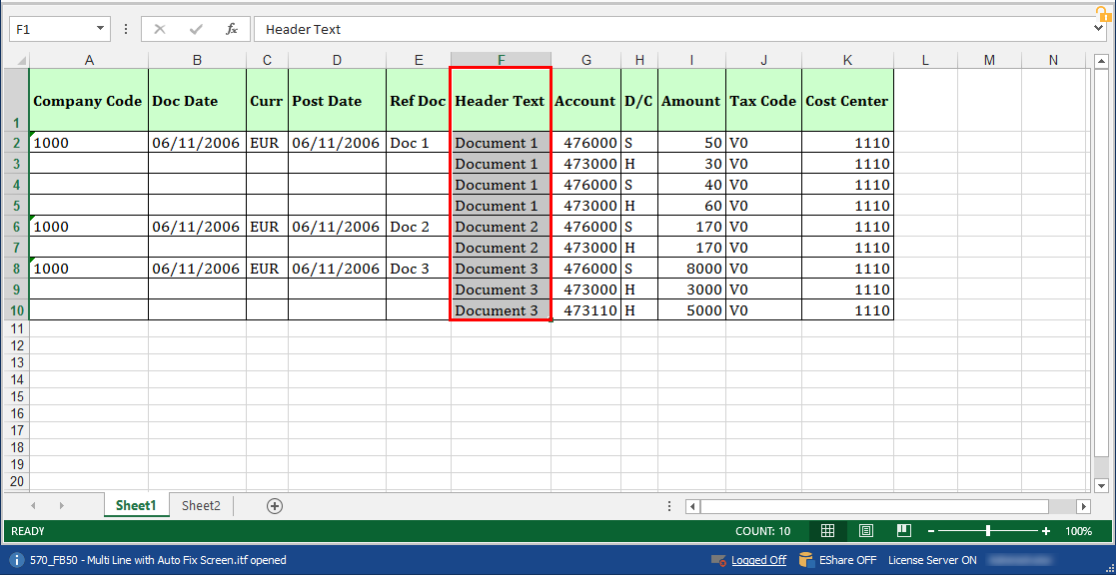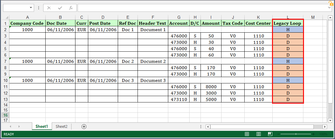 A. - Legacy Loop: (Available only Transaction technology only) You can also specify which rows must be used as header and which rows must be used as a detail in a separate column. As shown in the following screenshot, headers are named as