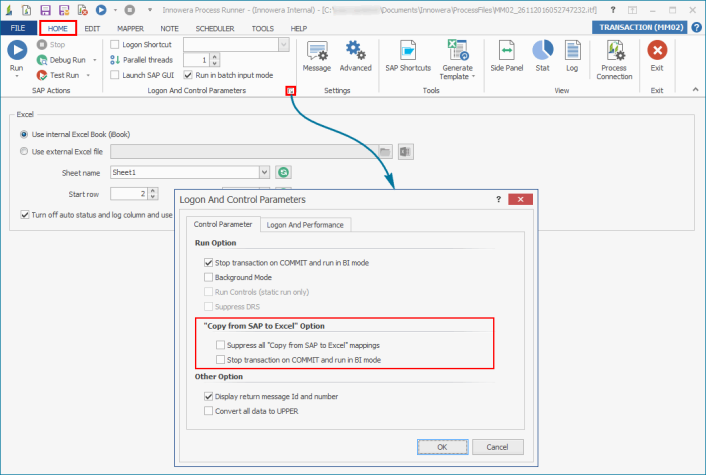 - To perform normal MM02 write function, select Suppress All "Copy from SAP To Excel" mappings.