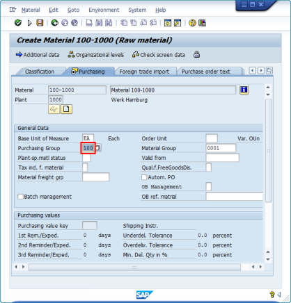 - Enter the appropriate value in Purchasing Group and select Enter. The last screen is displayed.