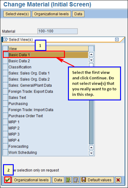 - Record by selecting Basic Data 1 or Basic Data 2 or the first view that you see. Do not select the view you want to go to yet.