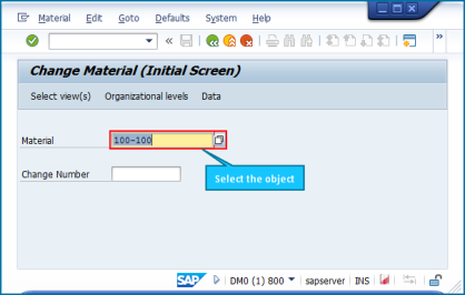- To capture the properties of an object, select it. For example, if you want to get the property values of Material field of MM02 transaction, point to the Material field.
