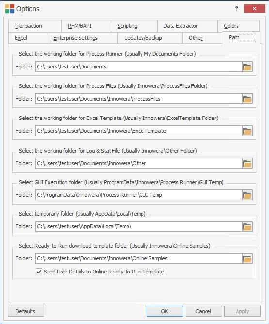 \\ProgramData\Innowera\Process Runner\GUI Temp, which is the default location. - Temporary folder: Changes the temporary folder path.
