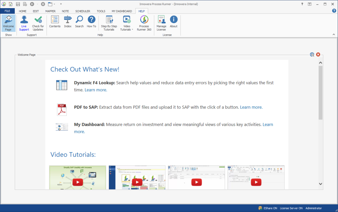 - Close all the Process files and select Welcome Page. The start page is enabled or disabled.